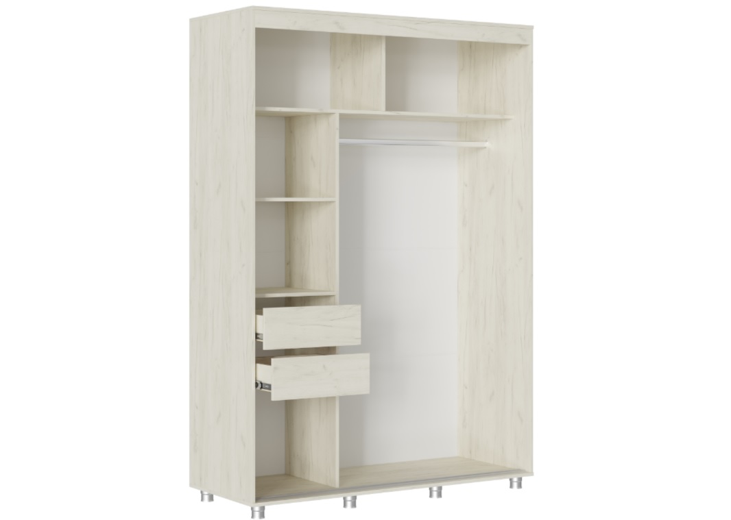 ФОРЕСТ Шкаф-купе 1.5 м. производится с фасадами, выполненными из ЛДСП 16мм. в цвет каркаса, дополнен комплектом зеркал на одной из створок и штапиком-накладкой (6*25 мм) на обеих створках.