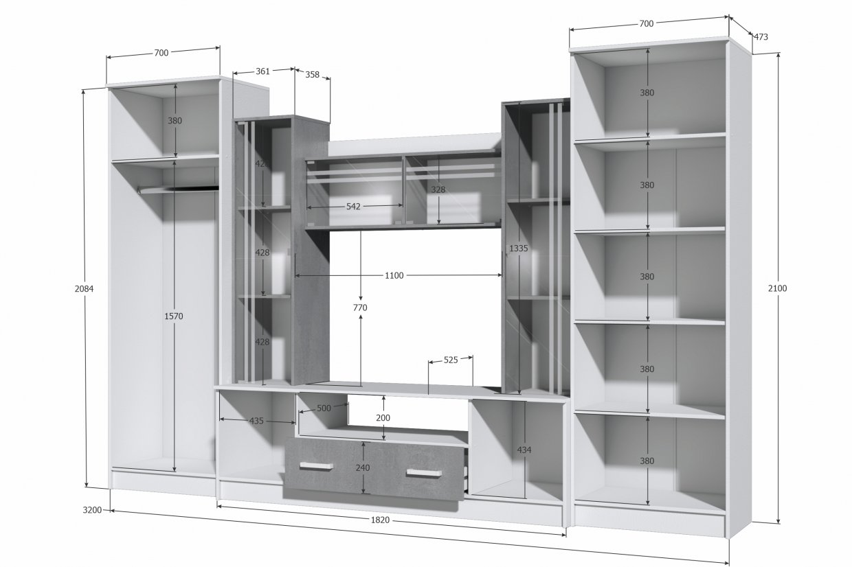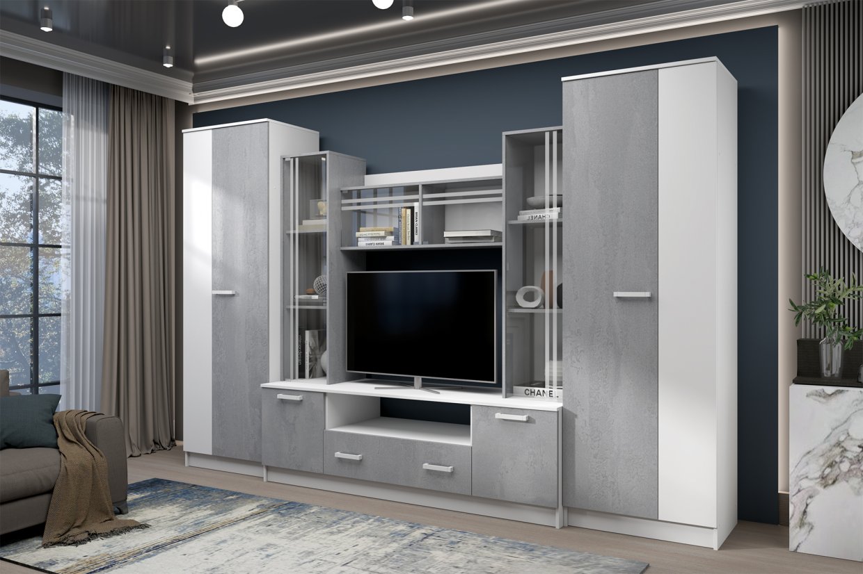 Стенка Николь-2 белый/бетонный камень(Зарон)